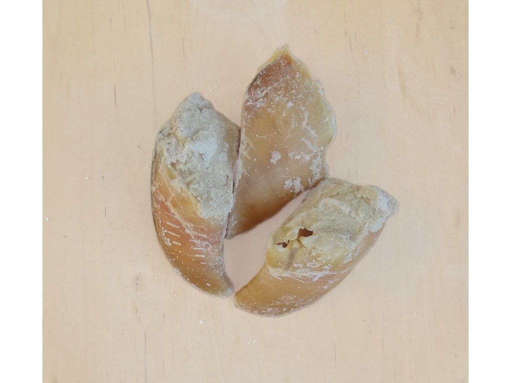 100% PŘÍRODNÍ PRODUKT BEZ KONZERVANTŮ, DOCHUCOVADEL A BARVIV. Tenhle unikátní pamlsek zabaví pejska na dlouhou dobu. Žvýkání podporuje péči o chrup a jeho čištení. Navíc posiluje žvýkací svaly a napomáhá u při výměně zubů při štěňátkach. Kopýtko je plněné ovčím tukem, který je pro pejska zdrojem energie, napomáha zažívání a je z něho krásná lesklá srst. Pejskům ovčí tuk moc chutná a je vhodný jako doplňek stravy pri sportovních aktivitách. Šetrná technologie zpracování uchovává přirozené výživné látky. Vhodné jako doplněk stravy nebo odměna. Zabezpečte dostupnost misky s vodou. Složení: hovězí kopýtko, ovčí tuk Analýza: Hrubý tuk 18%, Hrubý protein 72%, Vlhkost 6%