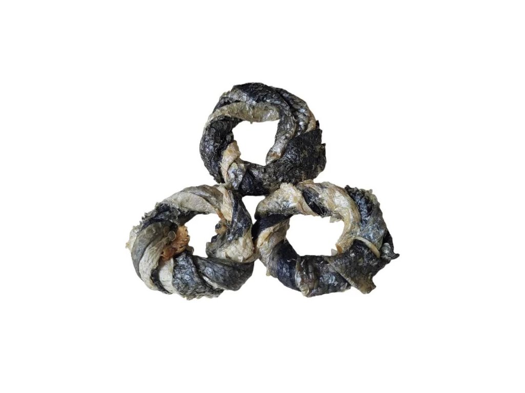 Sušený věneček z tresky je 100 % přírodní pamlsek pro psy vyrobený ze suroviny skóra z dorsza atlantyckiego – tedy z kůže atlantické tresky. Je to lehká a chutná rybí pochoutka, která nabízí přirozený zdroj kvalitních bílkovin, vitamínů a minerálních látek. Ryby obecně obsahují vitamíny A, D, E a vitaminy skupiny B, dále důležité minerály jako fosfor, hořčík, mangan nebo jod, a především cenné omega-3 mastné kyseliny, které podporují zdraví kůže, srsti, kloubů i srdce.